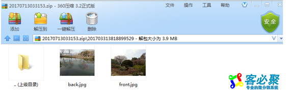 操作步骤: 总部后台→订单→订单管理→导出身份证图片:商家可按下单时间批量下载照片,导出的是压缩包,压缩包名字是随机生成的,下载后是一个个以订单号命名的文件夹,每个文件夹里含用户上传的照片,照片正面照是以back.jpg命名的,背面照是以front.jpg。