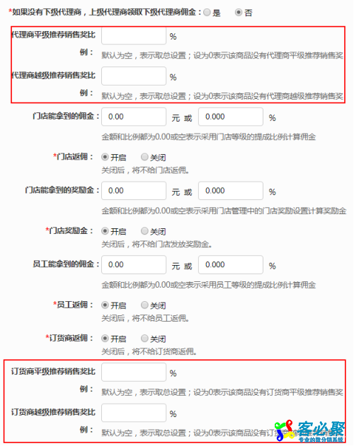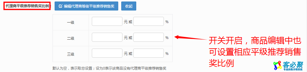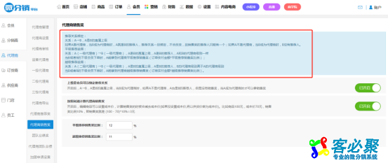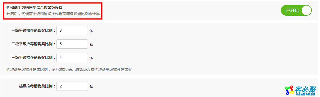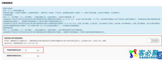 下面以代理商平级推荐销售奖为例:按照利润计算代理商销售奖 关闭,总的代理商平级推荐销售奖设置12%