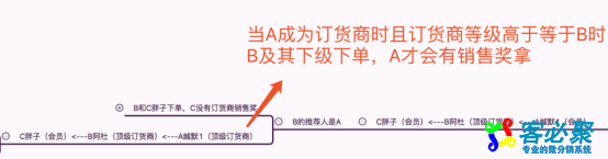 优化前:A(一级代理商)→B(一级代理商)→B1(会员)→C(二级代理商)→D(三级代理商),只有B和B1下单,A才能拿到B团队的销售奖。 优化后: 案例1:A(一级代理商)→B(一级代理商)→B1(会员)→C(二级代理商)→D(三级代理商),此时B、B1、C、D下单A都能拿到平级推荐销售奖。 案例2:A(一级代理商)→B(一级代理商)→B1(会员)→C(二级代理商)→D(三级代理商)→F(二级代理商),此时B、B1、C、D下单A都能拿到平级推荐销售奖;F下单D拿越级推荐销售奖。 订货商销售奖优化同上哦。