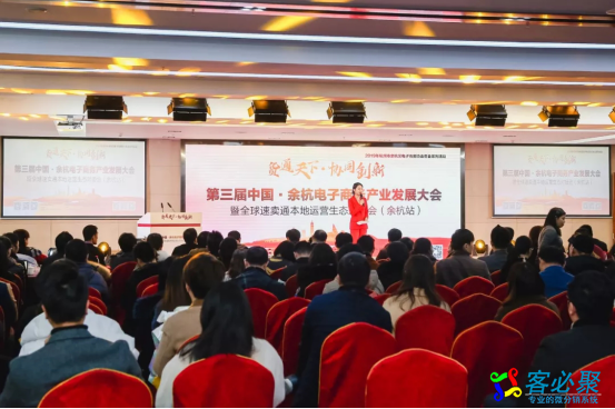 | |2019年12月27日,由余杭区商务局、中国(杭州)跨境电子商务综合试验区、浙江省电子商务公共服务中心指导,杭州市余杭区电子商务协会主办的 “第三届中国·余杭电子商务产业发展大会暨全球速卖通本地运营生态对接会(余杭站)”,在余杭区CBC时代大观举行,政府领导、嘉宾代表们以及近三百位电商企业一齐参与本次行业大会,高朋满座,场外展位人流不断。