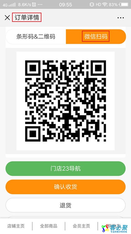 核销订单会在手机端的订单详情显示可识别二维码: