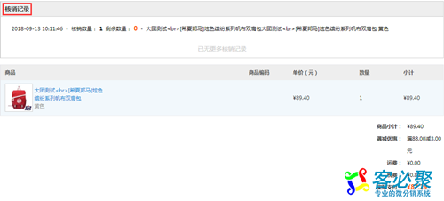 总部后台订单详情中也会显示相应核销记录: