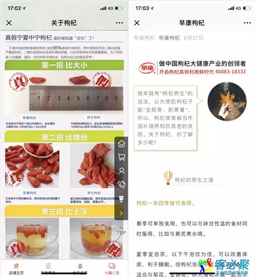 通过公众号推送关于枸杞的功效、使用人群、使用方式、注意事项等内容,有助于粉丝更详细地了解枸杞,比如早康枸杞通过与其他枸杞的对比,来引导客户发现早康枸杞的高品质,用户有购买需求的时候自然会想到早康枸杞这一品牌。