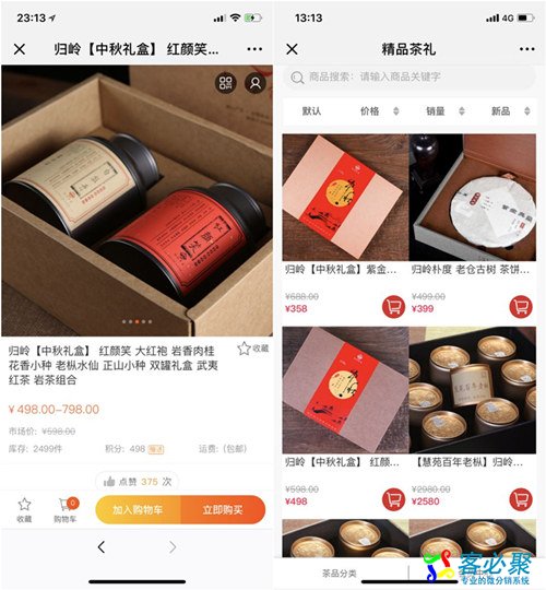 针对即将到来的中秋节,很多商城都开启了预热活动,“归岭茶品”微商城考虑到消费者中秋送礼的需求,特在商城推出中秋礼盒,利用节日热点,引发用户消费冲动,寻找并满足用户的消费需求。
