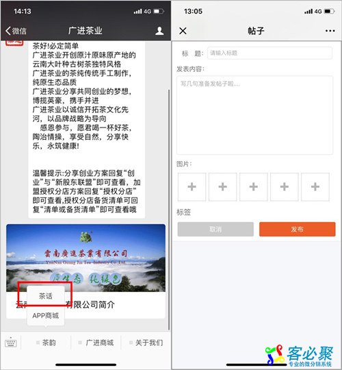 “广进茶业”在商城内设立互动版块,商城用户可以在商城发帖与商家、消费者形成互动,与消费者进一步交流,了解消费者对茶叶选品、类型和茶具等喜好。