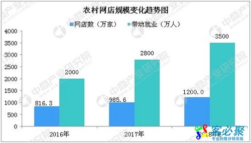 |近几年来,国家一直在支持发展农村电商,而农村电商的发展也非常高速,农村网店的数量每年都在递增。据数据统计显示,2017年农村网店达到985.6万家,较2016年增加169.3万家,同比增长20.7%,带动就业人数超过2800万人。据中商产业研究院预测,2018年农村网店数将达到1200万家,带动就业人数3500万人。