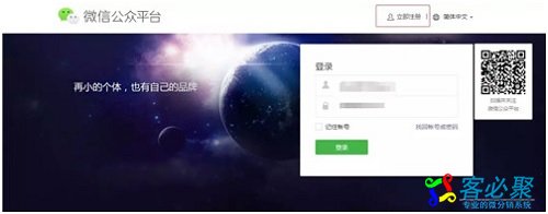 1)进入微信公众平台官网,在页面右上角进行注册。