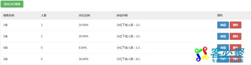分红等级,点击“添加分红等级”进行添加 。能正常添加分红等级的前提必须要绑定自己的域名并审核通过以后才能使用。