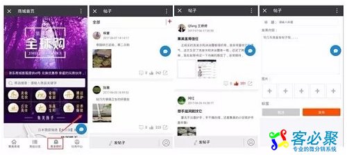 商城用户可以在微社区上晒买家秀、晒产品、互动交流等。为了活跃用户,商家也可以不定期的策划一些适合社区的活动,引导用户持续话题互动;