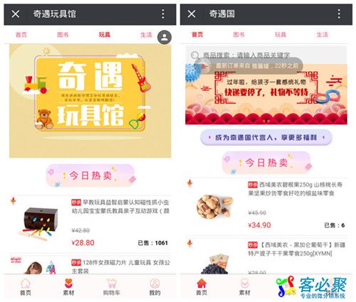 以上示例效果需要美工进行相应的设计,里面主要用到的装修模块有:图片广告、标题栏、图片导航