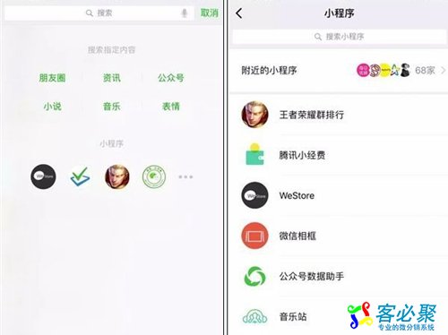 在微信—添加好友搜索框中,也可以搜索相应的小程序关键词