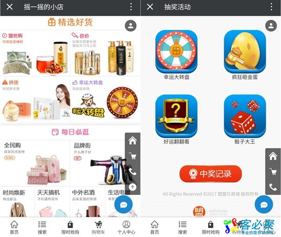 盟盟贝,灵活运用系统自带的拼团、秒杀、砍价、抽奖、0元购、1元购、预售、签到、转盘等活动促销工具。