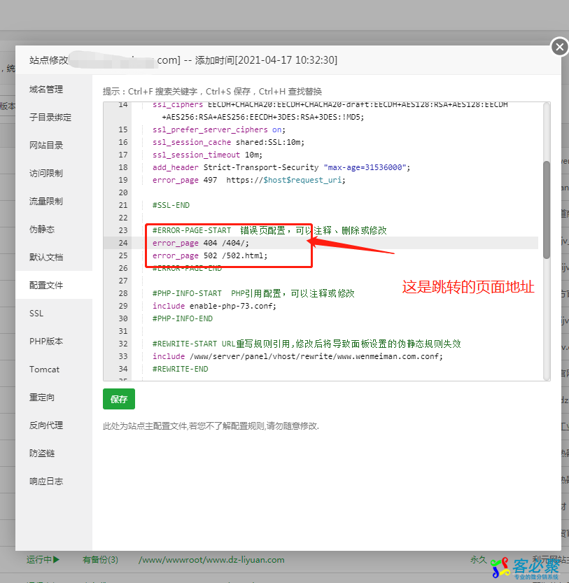 首先建立404页面,默认的是配置文件里面的根目录,如果是自定义的就是如图所示: